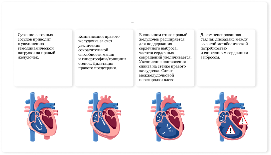 12. Grünig E., Eichstaedt C. A., Seeger R., Benjamin N. Right Heart Size and Right Ventricular Reserve in Pulmonary Hypertension: Impact on Management and Prognosis. Diagnostics (Basel, Switzerland). 2020; 10(12): 1110. https://doi.org/10.3390/diagnostics10121110.13. Адаптировано из Vonk Noordegraaf A., Westerhof B. E., Westerhof N. The Relationship Between the Right Ventricle and its Load in Pulmonary Hypertension. Journal of the American College of Cardiology. 2017; 69(2): 236–243. https://doi.org/10.1016/j.jacc.2016.10.047.